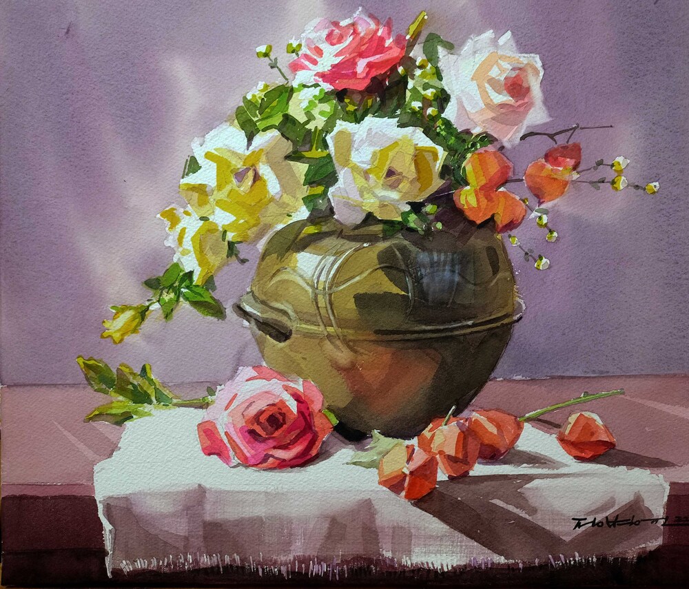 정병윤 작가는 수채로 색을 겹쳐 얹어가며 투명함과 화사함이 가득한 화면을 구성한다, 중첩된 색과 색 사이로 투명한 빛의 따스한 감정이 전해져 나오며 색은 깊이를 더한다.