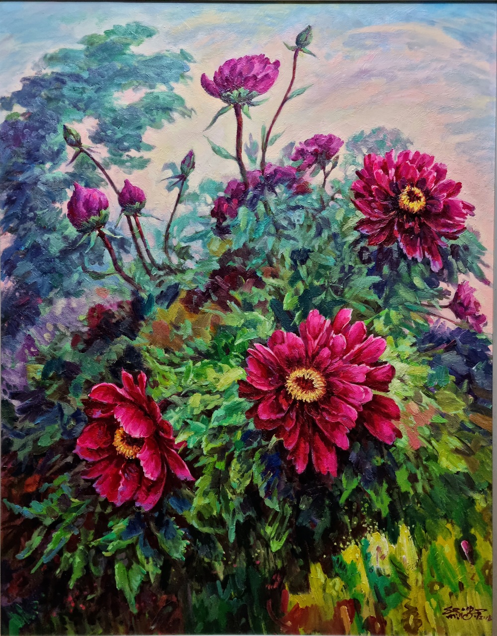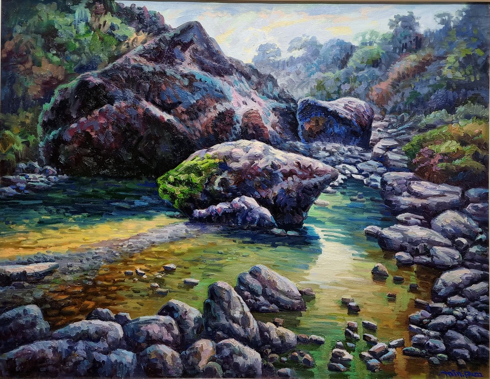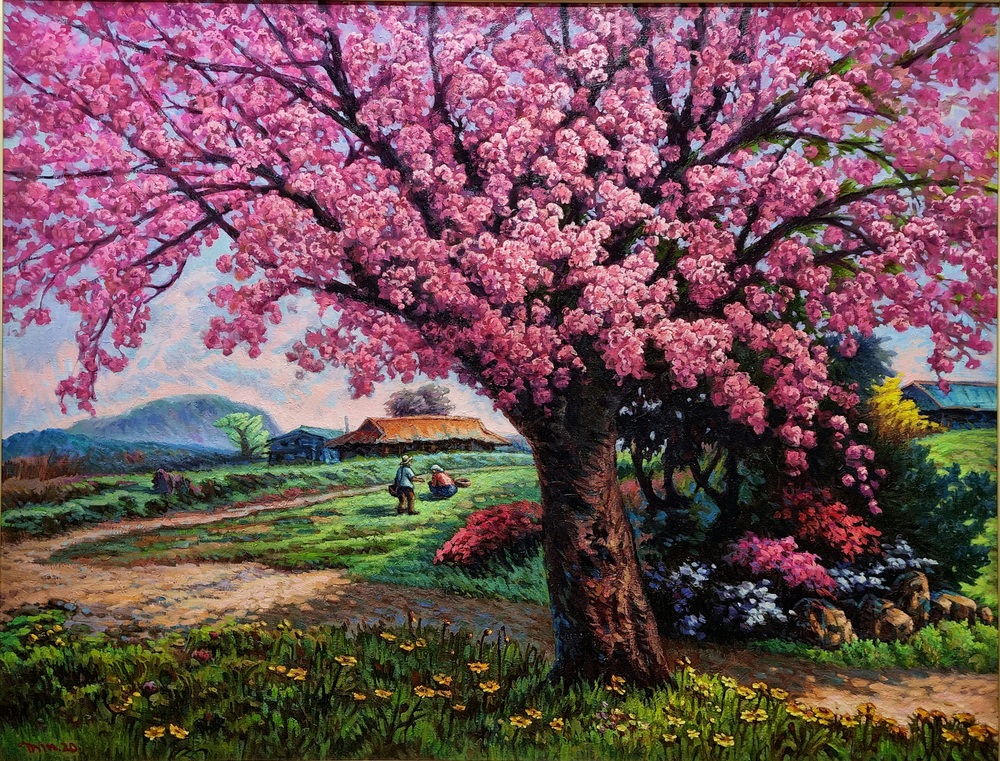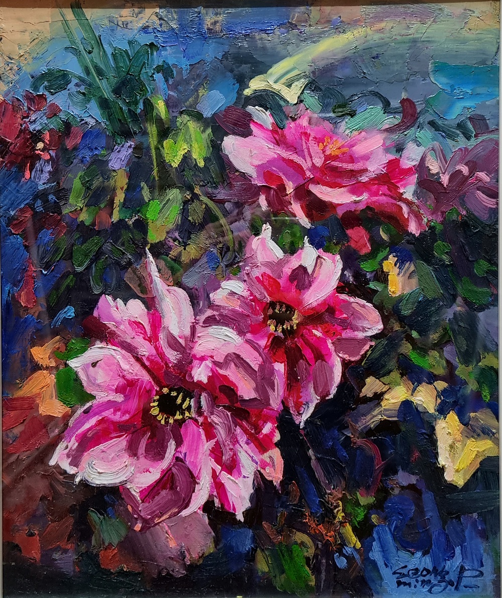 박성민 작가가 이번 초청전시회에서 선보인 작품은 [춘몽], [환희], [기쁨], [꽃지하일], [계곡예찬]이다.